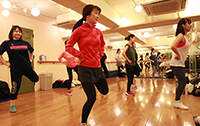 サーキットトレーニング形式で有酸素運動とヒップ・太腿のトレーニングを交互に行いしっかりと汗を流します。