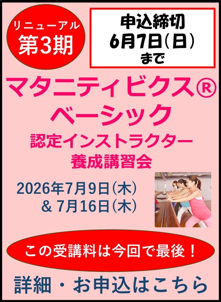 2026年度前期 マタニティビクス®べーシック認定インストラクター養成講習会
