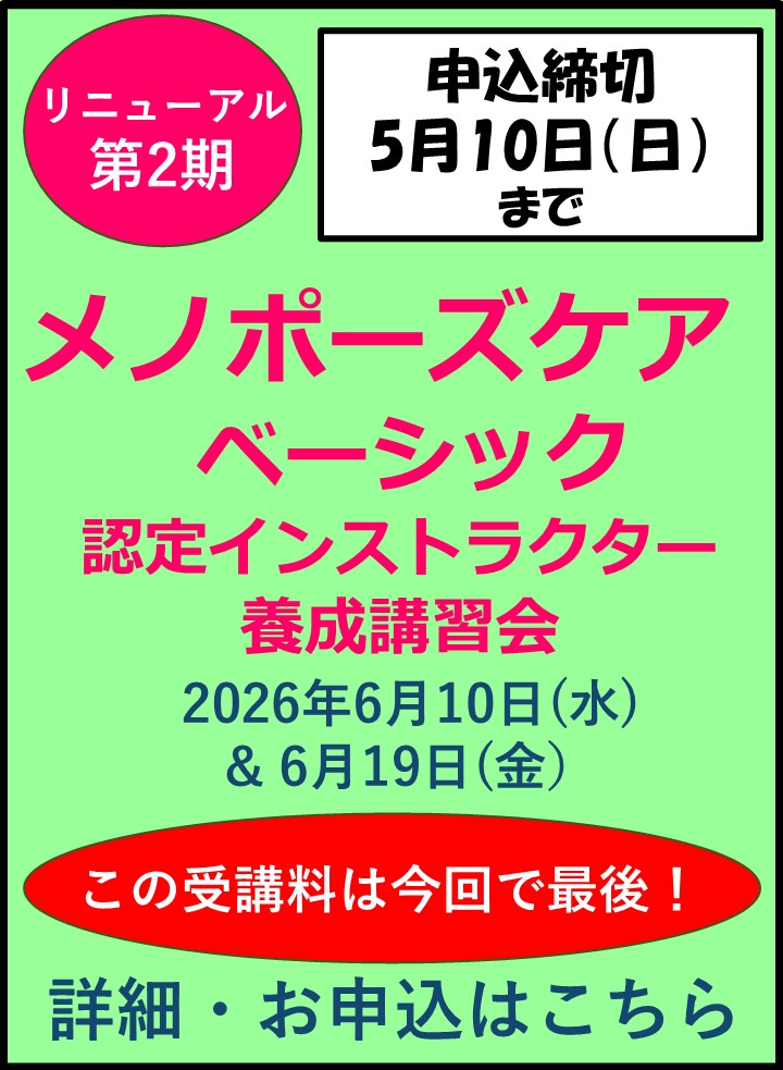 2026年度 メノポーズケアべーシック認定インストラクター養成講習会