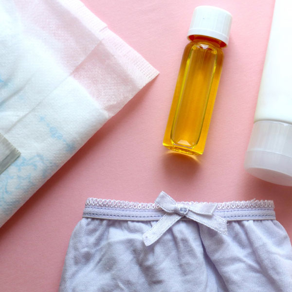 洗浄・保湿・生理ナプキン、おりものシート、吸水パンツ、月経カップ、温活アイテム。