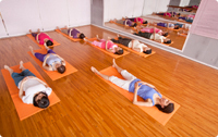マットの上でお産に必要な筋肉のトレーニングやお産の姿勢をイメージしたストレッチを行います。