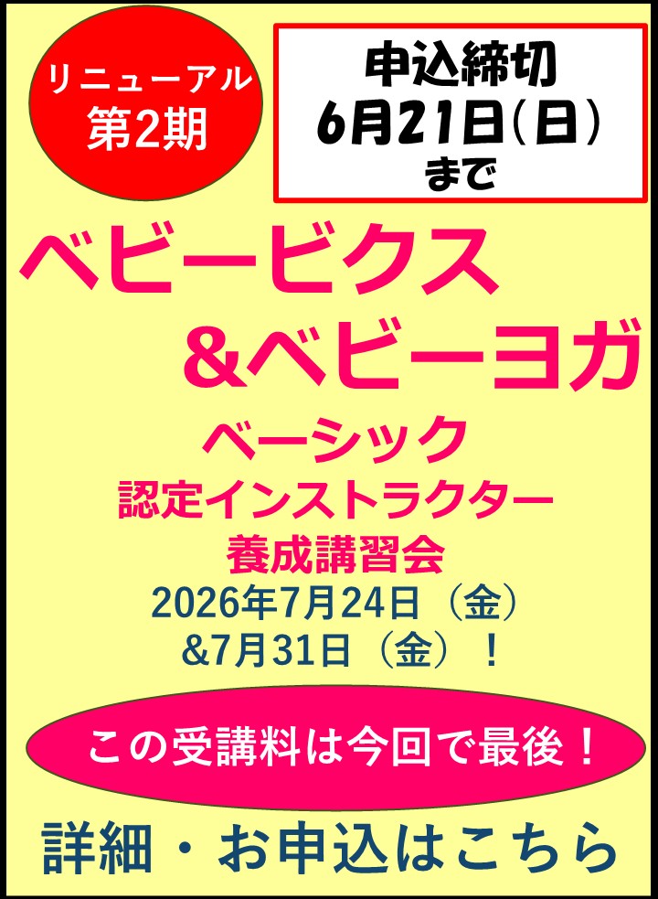 2026年度前期 ベビービクス&ベビーヨガべーシック認定インストラクター養成講習会