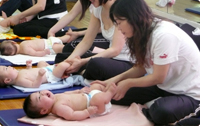 赤ちゃんを抱っこしたり、ママの体に乗せて、歌やリズム遊びをしながら、運動発達をサポートします。赤ちゃんのご機嫌に合わせて楽しみます。